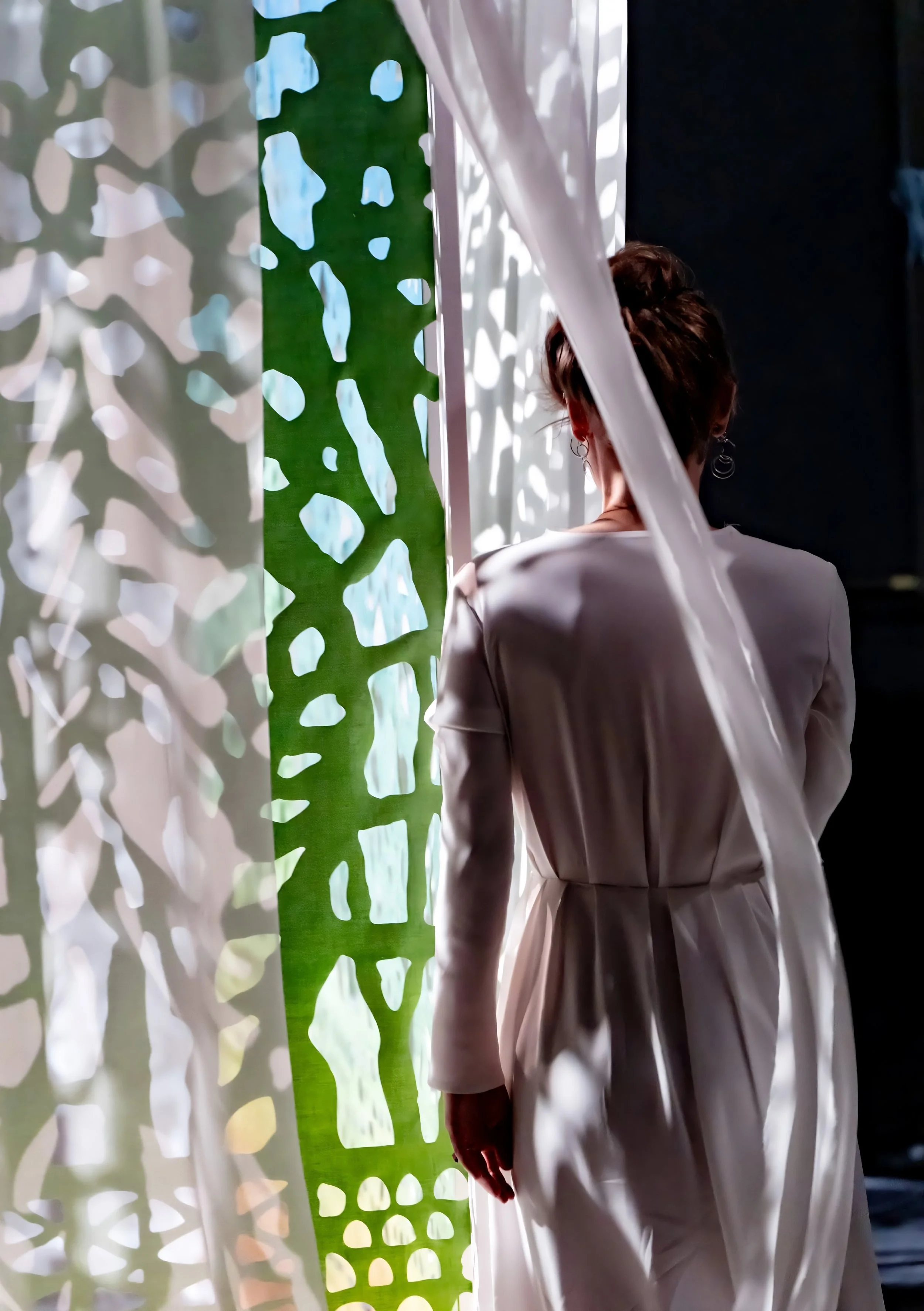 Facendo eco a “A Room of One’s Own/Una stanza tutta per sé” di Virginia Woolf, l’opera fa della stanza la protagonista, base per una narrazione che riflette sulla condizione femminile – ieri come oggi. Lene Therese Teigen cerca di creare atmosfera e situazione attraverso testo, suono, tessuto e corpo, invitando il pubblico a un’esperienza sensoriale e a una dilatazione del tempo. Gli spettatori vengono condotti dentro e fuori da uno spazio-scenico che abbraccia passato e presente, senso e sensibilità, respiro e azione.